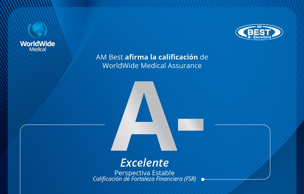 La calificadora de riesgos AM Best afirmó la calificación de fortaleza financiera de (FFA) A- (Excelente) de WorldWide Medical Assurance, así como su calificación crediticia de emisor de largo plazo (ICR) a- (Excelente) con perspectiva estable.