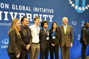 Estudiantes ganadores con Bill Clinton y Chelsea Clinton.