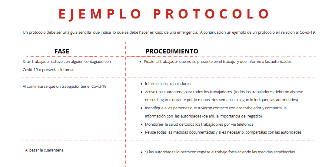 El objeto de este documento es apoyar a los empresarios a tener una ruta sobre los aspectos que deben cubrirse en materia de salud y seguridad ocupacional en relación al COVID-19.