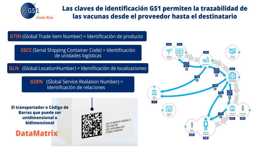 Hoy en día, más de 70 países tienen regulaciones de salud o requisitos de socios comerciales para los cuales la industria usa estándares GS1. Estos países confían en los códigos de barras bidimensionales (2D) GS1 DataMatrix que pueden codificar la información de identificación de la vacuna para ayudar a reducir errores y permitir la trazabilidad.