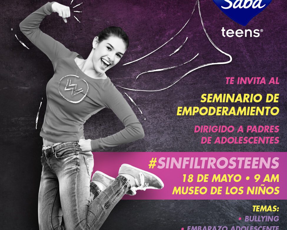 En el marco del mes contra el acoso escolar la marca Saba realizará el Seminario de Empoderamiento #SINFILTROSTEENS, el próximo jueves 18 de mayo, en el Auditorio Nacional del Museo