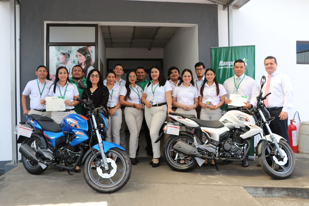 Salvador Figueroa y Martha Talavera recibieron una motocicleta marca Genesis RKS 150, por su destacada labor en Banpro Grupo Promerica durante todo el 2024.