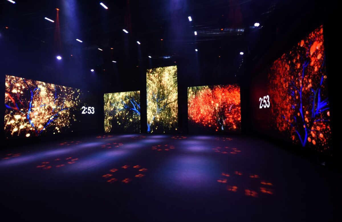 La instalación, ubicada en la Plaza de la Cultura, ofrece una experiencia inmersiva con más de 100 metros cuadrados de pantalla, más de 30 luces robóticas y sensores para que