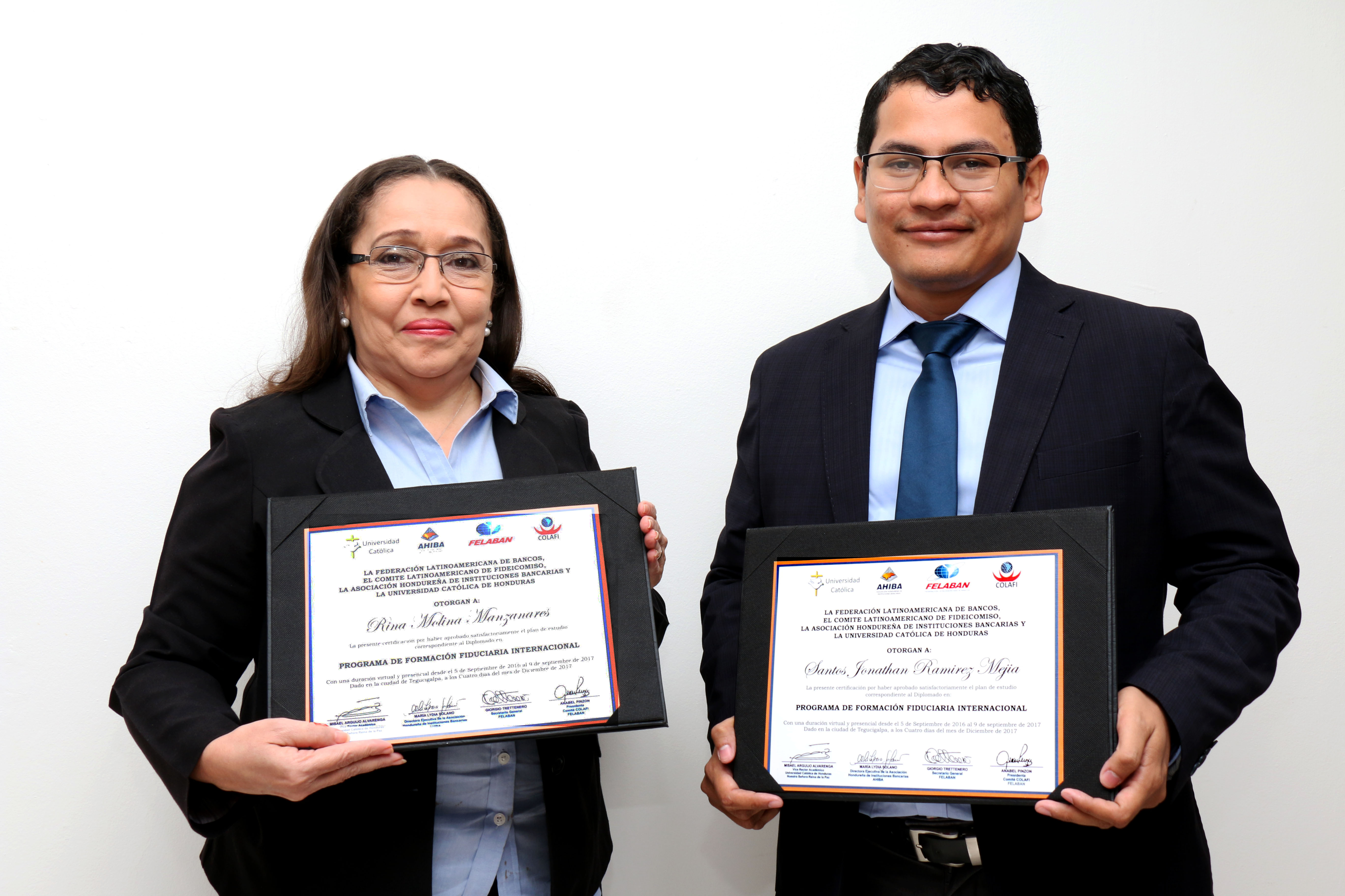 Santos J. Ramírez y Rina Molina de la gerencia de fideicomiso de Banpro Grupo Promerica participaron en el diplomado de Formación Fiduciaria Internacional, el cual fue impartido por la Federación