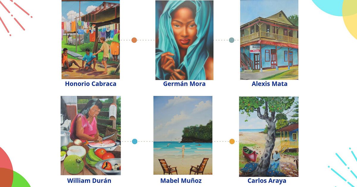 Los pintores Honorio Cabraca, William Durán, German Mora, Carlos Araya Luis Obregón, Fernando Mata y Mabel Muñoz tienen en común su origen caribeño o su amor por el colorido de