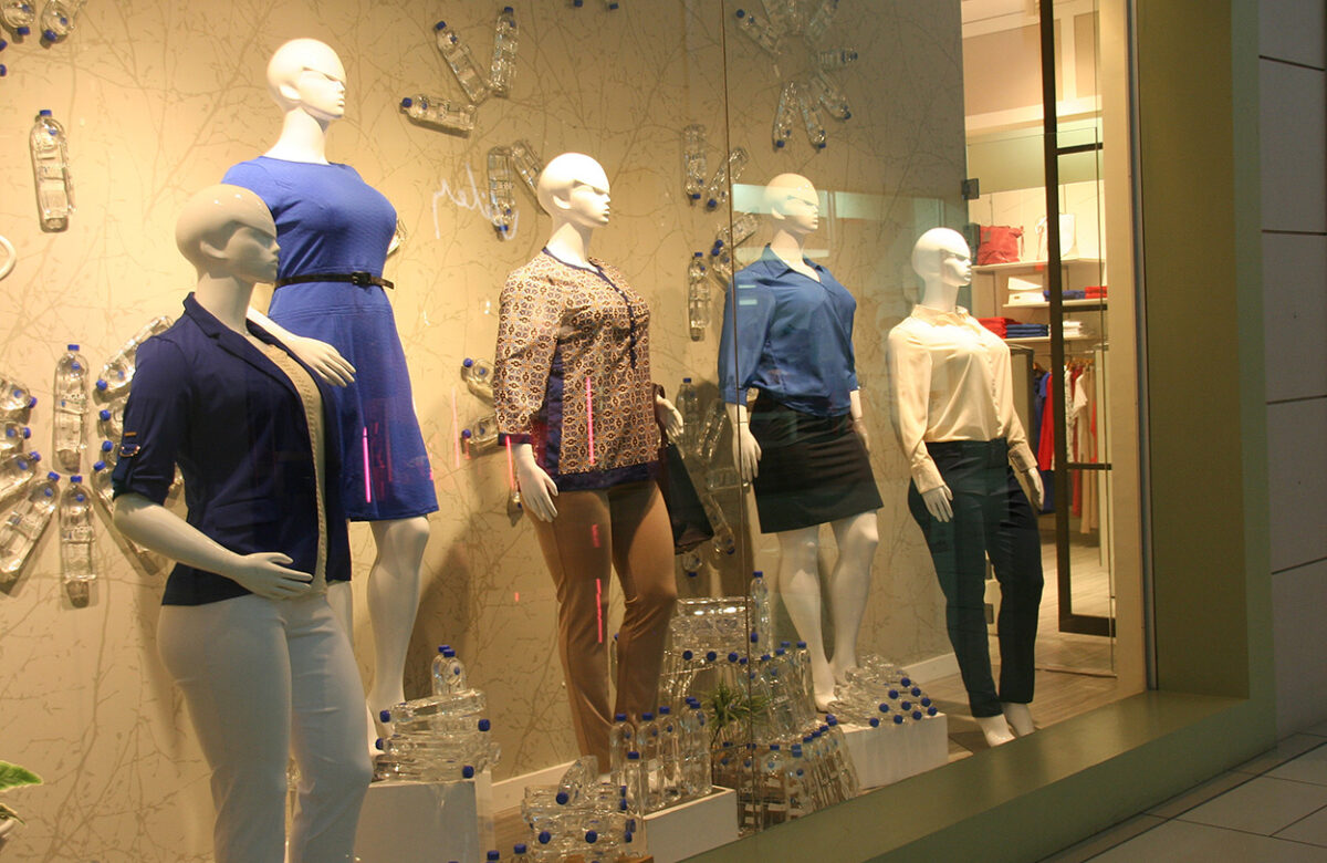 Si bien María & Co es una tienda especializada en ropa en tallas XXL, en Costa Rica, si usted pasa por las vitrinas verán que están decoradas con muchas botellas