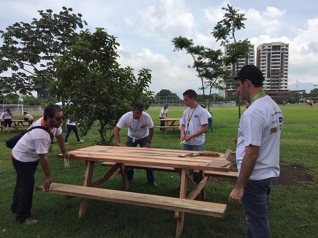 Este martes más de 100 asociados y asociadas de Walmart de México y Centroamérica se dedicaron a lijar, barnizar e instalar nuevas bancas para picnic, en el Parque La Sabana.