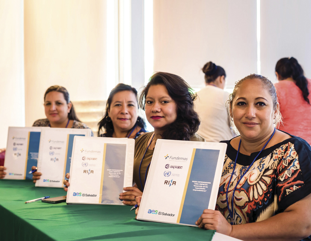 Con los talleres AES Mujer-Empretec, las familiares de colaboradores aprenden y desarrollan habilidades para iniciar sus propios negocios.