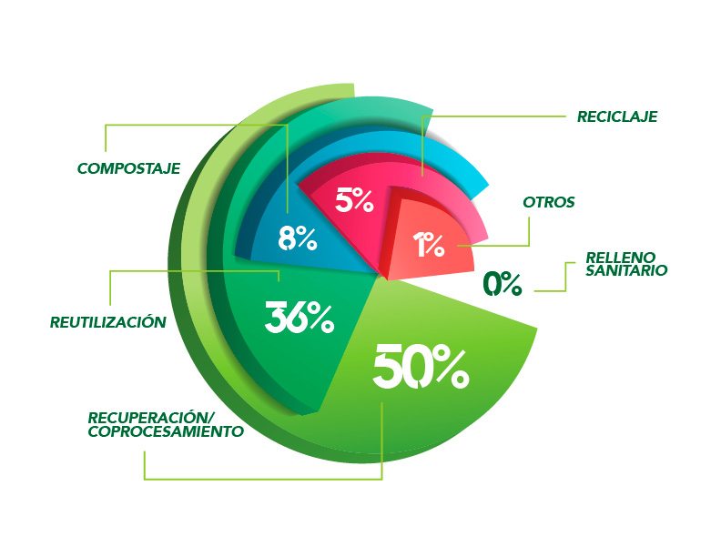 Mora detalló que ese pequeño porcentaje de residuos enviados a rellenos sanitarios, demuestra que la gestión integral de residuos por parte de las empresas participantes en el GRI es cada vez mejor. El 50% de estos residuos se lograron recuperar y coprocesar, el 36% reutilizar, el 8% compostar y el 5% reciclar.
