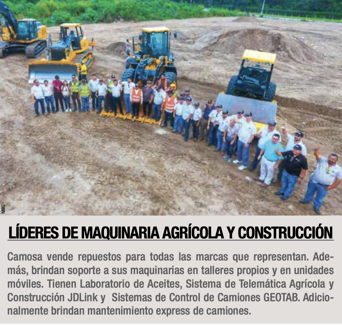 “La clave del éxito para tener una excelente reputación corporativa es tener como el centro a nuestros clientes y proveedores, buscando soluciones integrales, soluciones que agreguen al negocio de nuestros clientes. Estamos en permanente progreso, siendo pilotos de un sin fin de proyectos innovadores dentro de nuestra red de distribuidores que nos ha permito tener éxito en nuestros negocios y reputación. Camosa líder indiscutible en la venta de maquinaria agrícola John Deere y ha sido reconocido en varias ocasiones por la División de John Deere Construcción como mejor distribuidor de Latinoamérica. Honduras es un mercado pequeño, pero ser líderes es un orgullo y reflejo de la eficiencia y solidez con la que hacemos nuestras operaciones”, indican sus voceros.