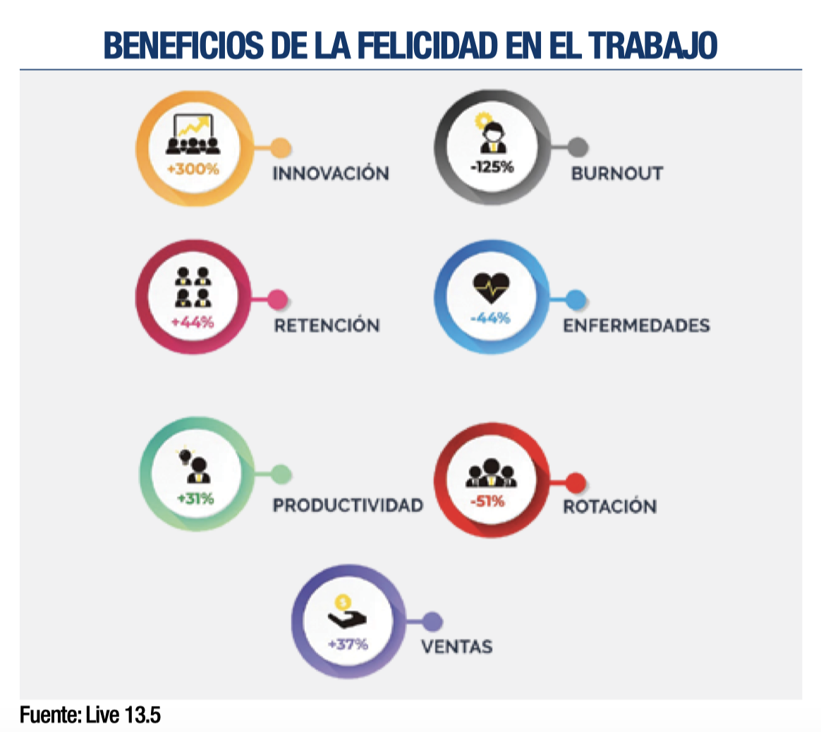 Live 13.5 es una firma consultora con experiencia regional en el bienestar y la felicidad de los colaboradores. Sus expertos indican que una empresa feliz es la que se conforma por colaboradores emocional y profesionalmente felices, y esto es mayoritariamente, responsabilidad de las empresas a través del llamado salario emocional, que se refiere a aquellas retribuciones que un trabajador puede conseguir de su empresa – sin carácter económico – y que están dirigidas a mejorar su bienestar y su calidad de vida.
