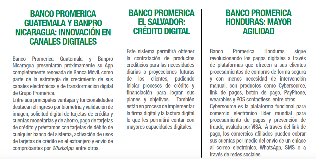 Dado el efecto del Coronavirus, los consumidores y negocios están accediendo a los servicios financieros a través de canales digitales, como la plataforma transaccional por Internet y las aplicaciones móviles, por lo cual Grupo Promerica ha acelerado el proceso de transformación digital.