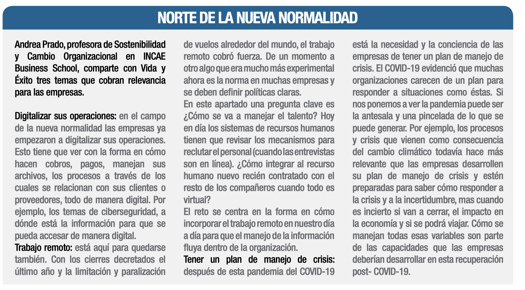 “En un ambiente de incertidumbre en el cual vivimos durante esta nueva normalidades es difícil tener una receta unica para emerger exitosos como empresa. Lo importante es aprender de las experiencias y convertirse en organizaciones ágiles e innovadoras”.
