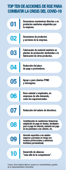 De acuerdo con Elena Galante Marcos, asesora en Sostenibilidad y gestión de la Responsabilidad Corporativa, el apoyo del sector privado está siendo imprescindible en el abordaje de esta crisis, ya que demuestra su capacidad de innovación, adaptación y consciencia de que “no hay empresa exitosa en sociedades fracasadas”, siendo parte de la solución con responsabilidad y creatividad.