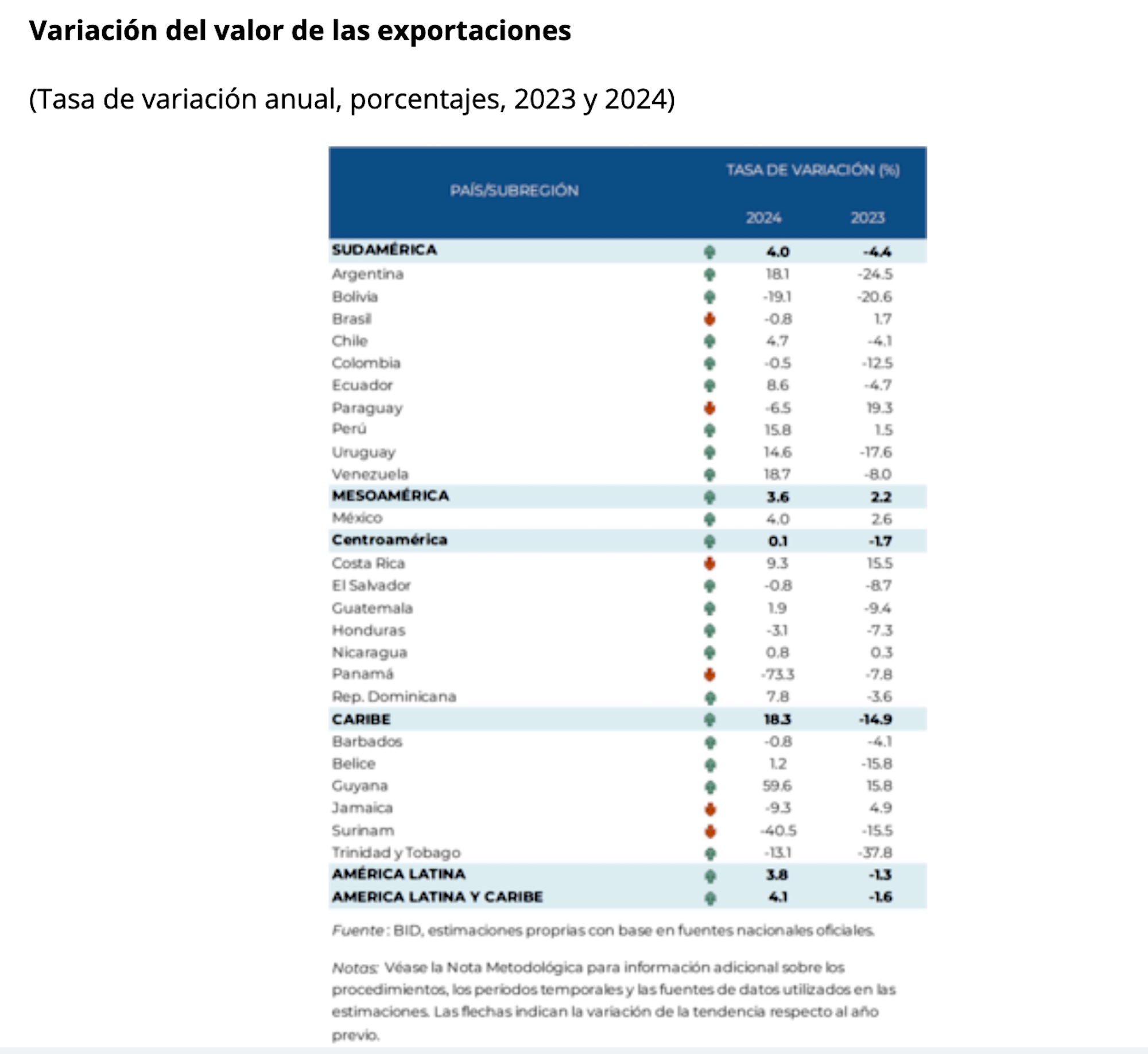 El valor de las exportaciones de bienes de América Latina y el Caribe creció un 4% en 2024, después de la bajada en 2023, según el último informe del Banco Interamericano de Desarrollo (BID), informa La Tribuna.