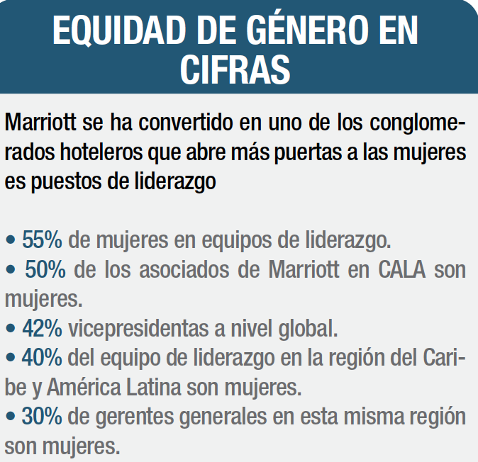 En todos los hoteles de la cadena, el 55% de sus equipos de liderazgo están a cargo de mujeres, y el 42% de las vicepresidencias a nivel global son mujeres.