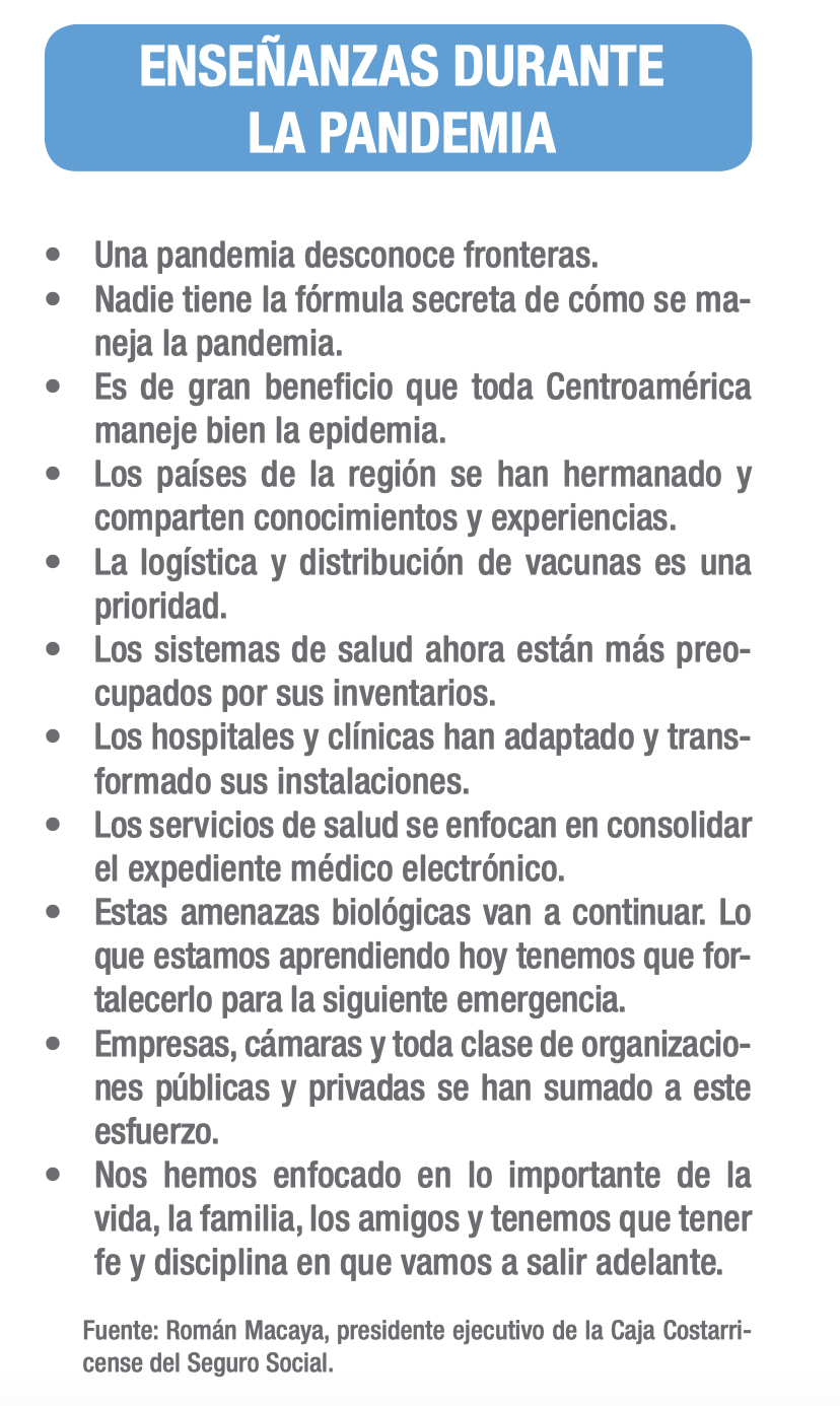 “Un gran desafío hasta la fecha ha sido competir en un mundo globalizado donde hay una emergencia sanitaria sincronizada, entonces todos estamos comprando los mismos insumos a los mismos fabricantes y eso genera un estrés logístico a nivel mundial. Lo que esta pandemia nos ha enseñado es que debemos tener suficiente capacidad para atender emergencias que pueden surgir de forma imprevista como esta, pero también tener cierta capacidad de producción local para contar con una redundancia en opciones de abastecimiento”, afirma Román Macaya, presidente ejecutivo de la Caja Costarricense del Seguro Social.