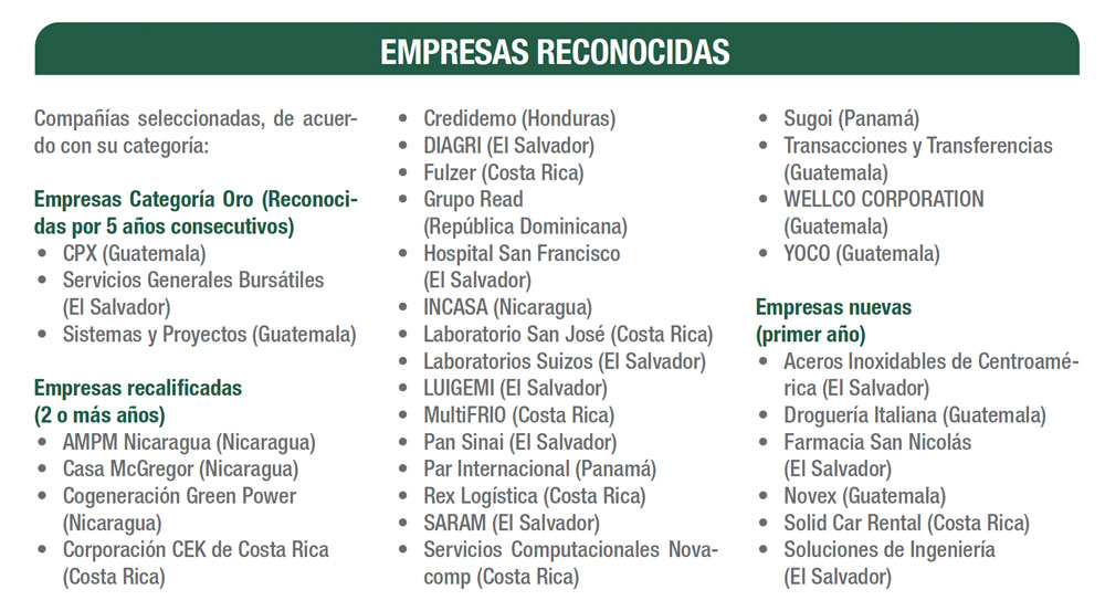 “A pesar de que el programa está integrado por siete países (cada uno con su propia cultura, características y matices) hay algo que las Mejores Empresas Centroamericanas tienen en común: la excelencia y la mejora continua. Ser una MECA depende del compromiso, de hacer las cosas bien, con pasión y propósito. De cuidar a su gente, de innovar y siempre buscar dejar una huella positiva”, indica Pilar Ruiz de Chávez, socia de Mejores Empresas de Latinoamérica.